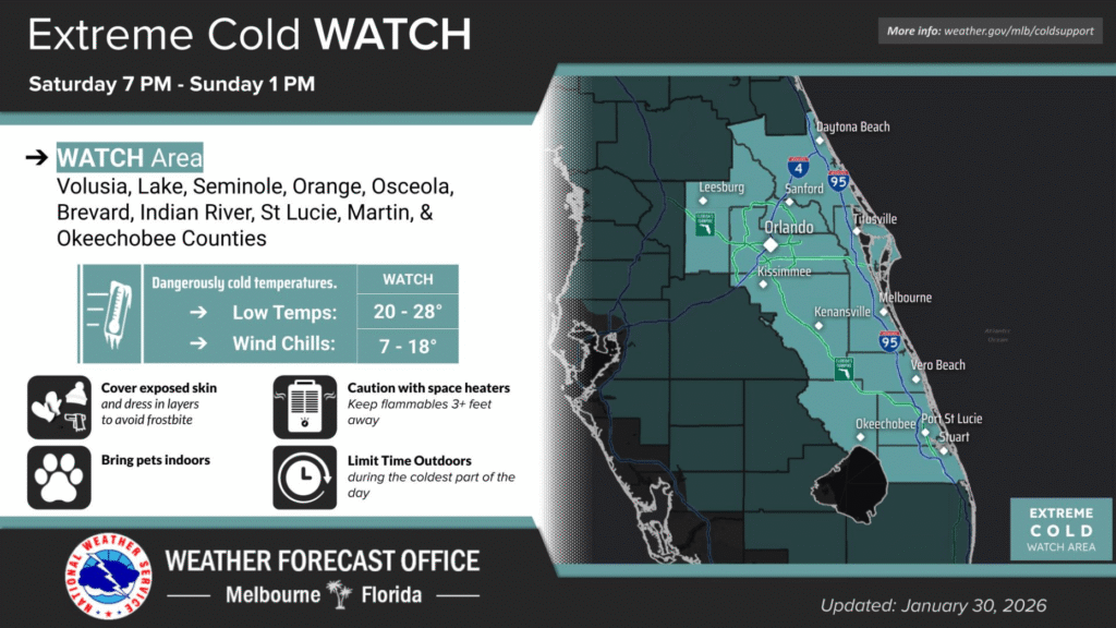 A Flórida Central passou a ser monitorada com atenção por meteorologistas diante da possibilidade rara de ocorrência de flocos de neve neste fim de semana, em meio a uma onda de frio extremo que avança sobre o estado. As previsões indicam queda contínua das temperaturas em Orlando e cidades vizinhas, com a chegada de uma […]