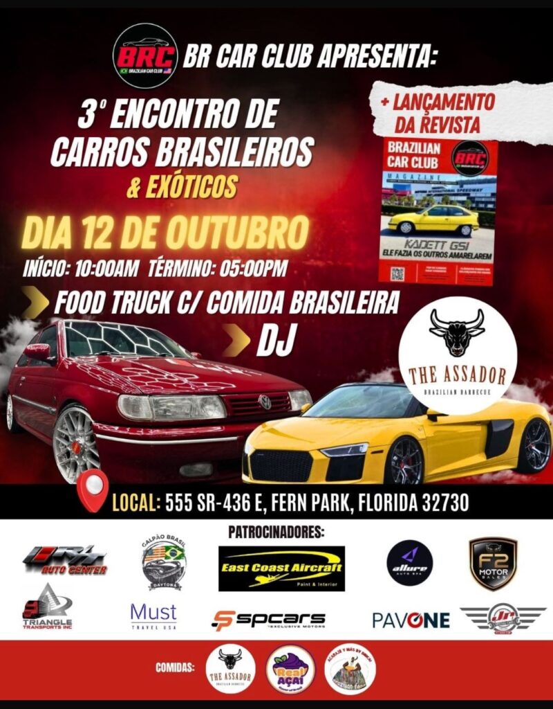 O 3º Encontro de Carros Brasileiros e Exóticos, organizado pelo BR Car Club, promete reunir entusiastas em Fern Park, Flórida, para uma celebração de veículos clássicos brasileiros e modelos exóticos. A exposição, que se consolida como um evento marcante na Flórida, destaca carros raros e designs icônicos, atraindo colecionadores, famílias e curiosos para um dia […]